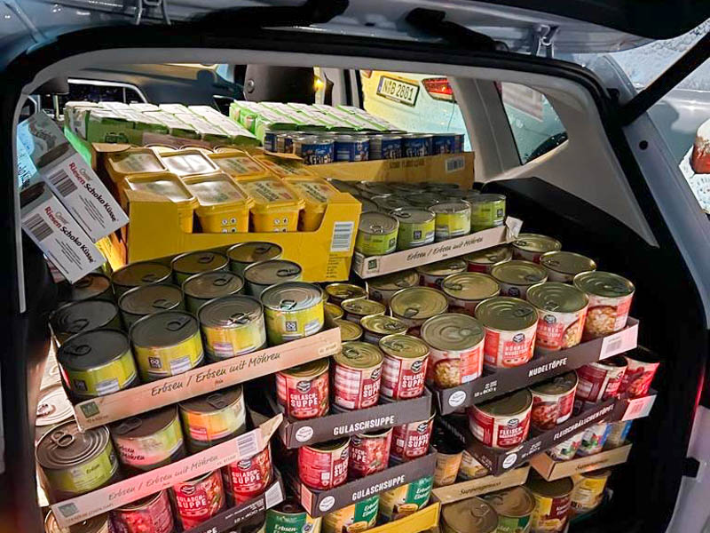Am Mittwoch, den 11.10. 23, waren wir unterwegs, Einkaufen, Spenden einsammeln und dann Packen. Gewicht und Volumen stellen uns immer wieder vor die Herausforderung alles sicher zu laden und dann gut an die Gemeinde Zbarazh zu übergeben. Hier werden dann die Spenden aufgeteilt, für das Krankenhaus, die Flüchtlinge im Ort und für das Freiwilligen Bataillon an der Front, die dringend auf unsere Lebensmittel und medizinischen Hilfsgüter warten.